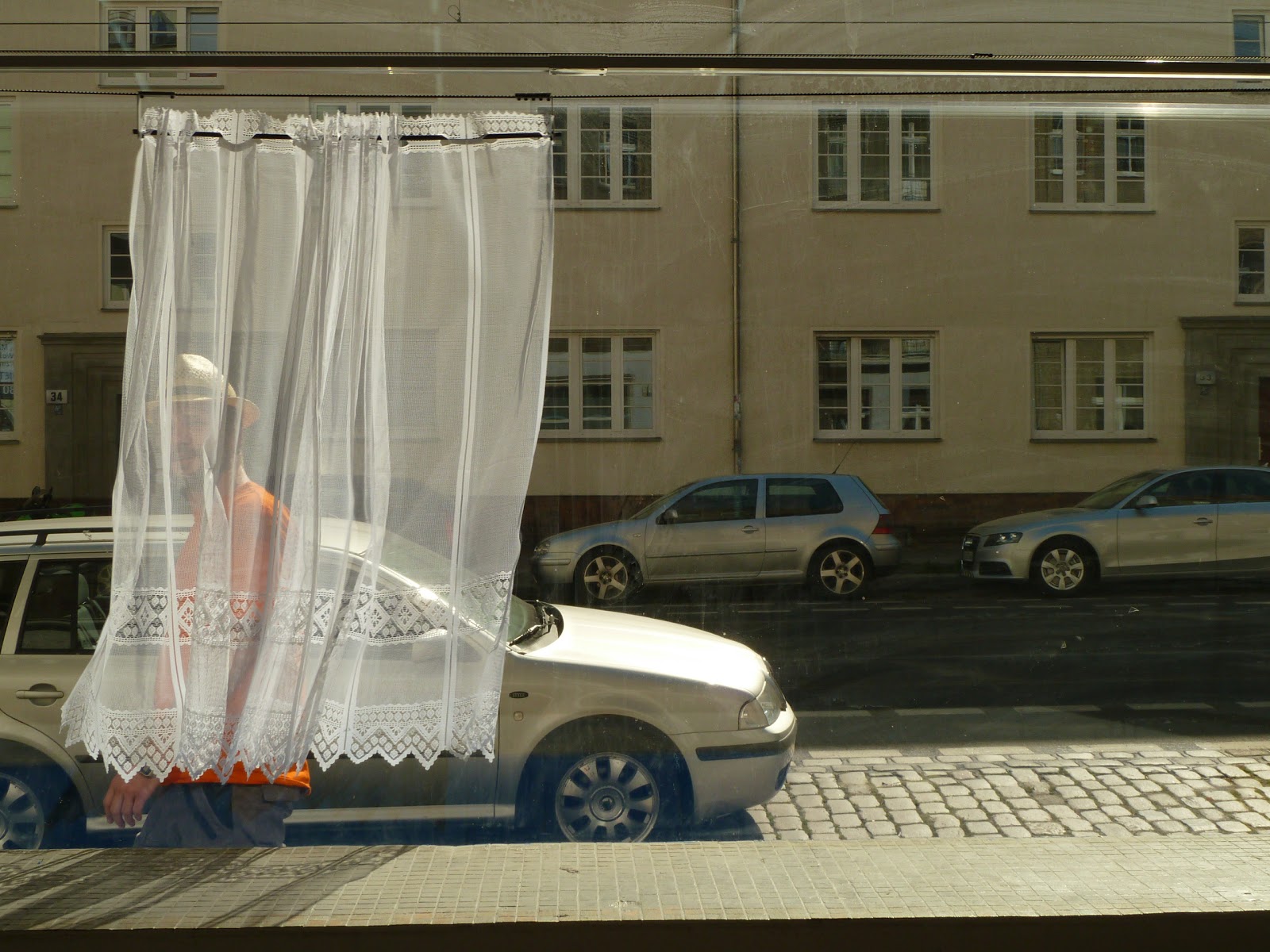 Rideau insolite programmé pour accompagner les mouvements des badauds devant la vitrine.