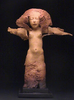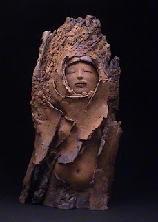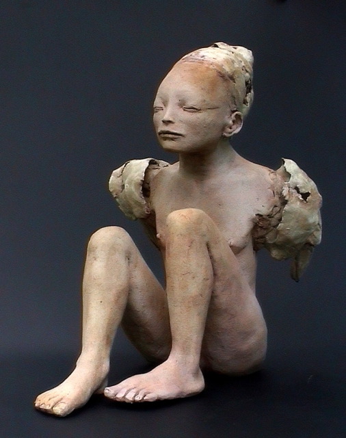 Le silence, compagnon des sculptures de Marika Baumler. Corps enfermés et désir de s'extraire, de se dénouer, de s'étirer. Chrysalides dans une gangue d'argile...