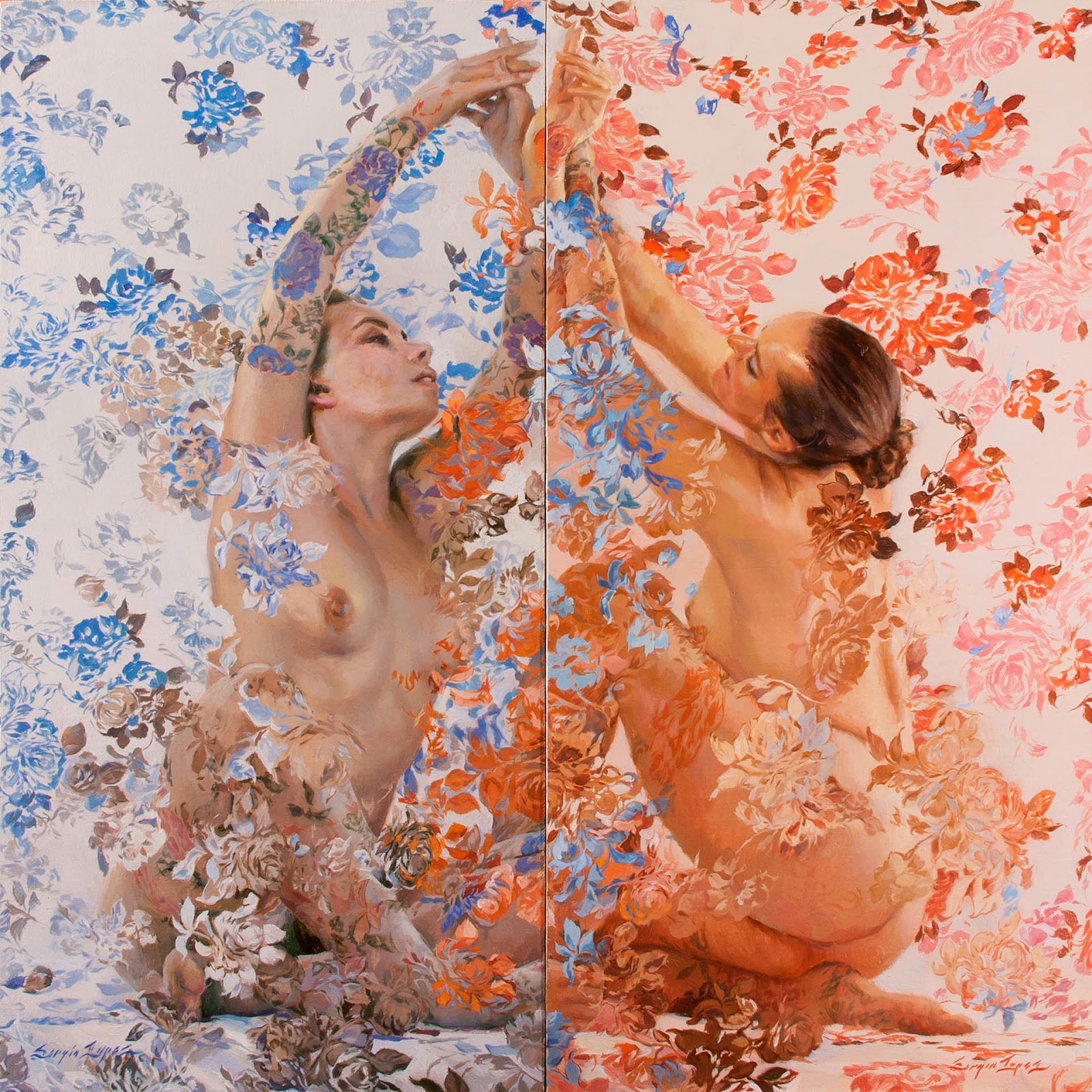 J'ai aimé les nus recouverts de fleurs de Sergio Lopez, délicats et sensuels