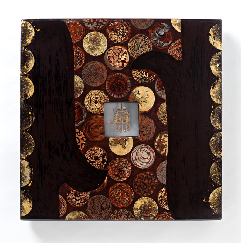 "Je pratique la laque depuis bientôt 40 ans dans mon atelier en région parisienne. J’ai eu pour cette matière unique et méconnue un véritable coup de foudre : j’en ai d’abord aimé l’odeur , subtil mélange d’essence de térébenthine ,de bois poncé, de colle…j’en ai ensuite aimé le mystère, l’exotisme puis la lenteur qui m’a parfaitement convenue. La laque m’a apaisée, m’a donné et continue à me donner des leçons de sagesse et enfin avec elle je suis partie en voyage à la rencontre des laques et des laqueurs , artistes reconnus ou modestes artisans. A travers le monde,de Birmanie en passant par le Vietnam jusqu’au Népal ou le Japon, chaque rencontre est l’occasion d’échanges uniques qui fécondent ma création, emplissent mon imaginaire et c’est ensuite dans le silence de mon atelier ,au fond du jardin de Colombes, que se crée un monde de couleurs , d’ors et de platine, de brillance et de matité, un monde où les mains s’invitent à caresser et les yeux à voyager."