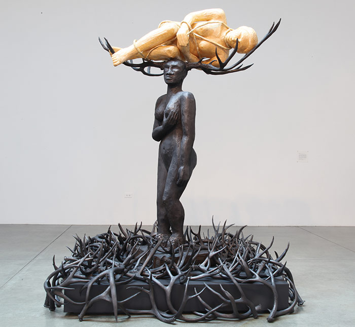"Alison Saar (née le 5 février 1956) est une artiste plasticienne basée à Los Angeles, en Californie . Ses œuvres portent sur la diaspora africaine et l'identité de la femme noire et sont influencées par la spiritualité africaine, caribéenne et latino-américaine."